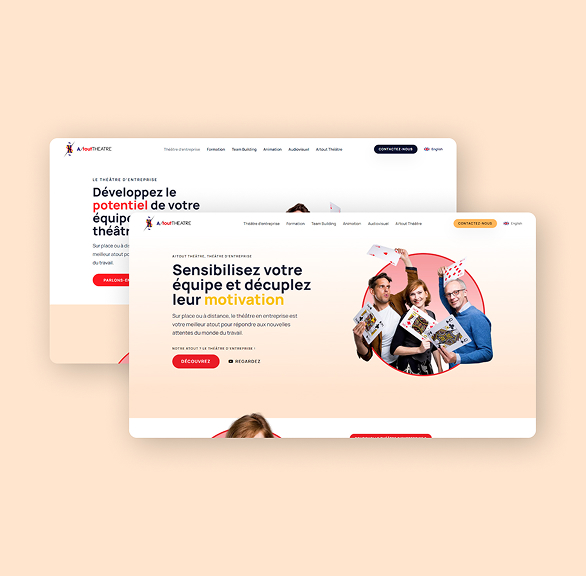 Notre mission était de revitaliser la marque et la présence digitale d’ATout Théâtre. L’objectif était de moderniser leur site web tout en repensant entièrement leur image en ligne, afin d’attirer une nouvelle clientèle et de repositionner la marque sur le marché du théâtre d’entreprise.
