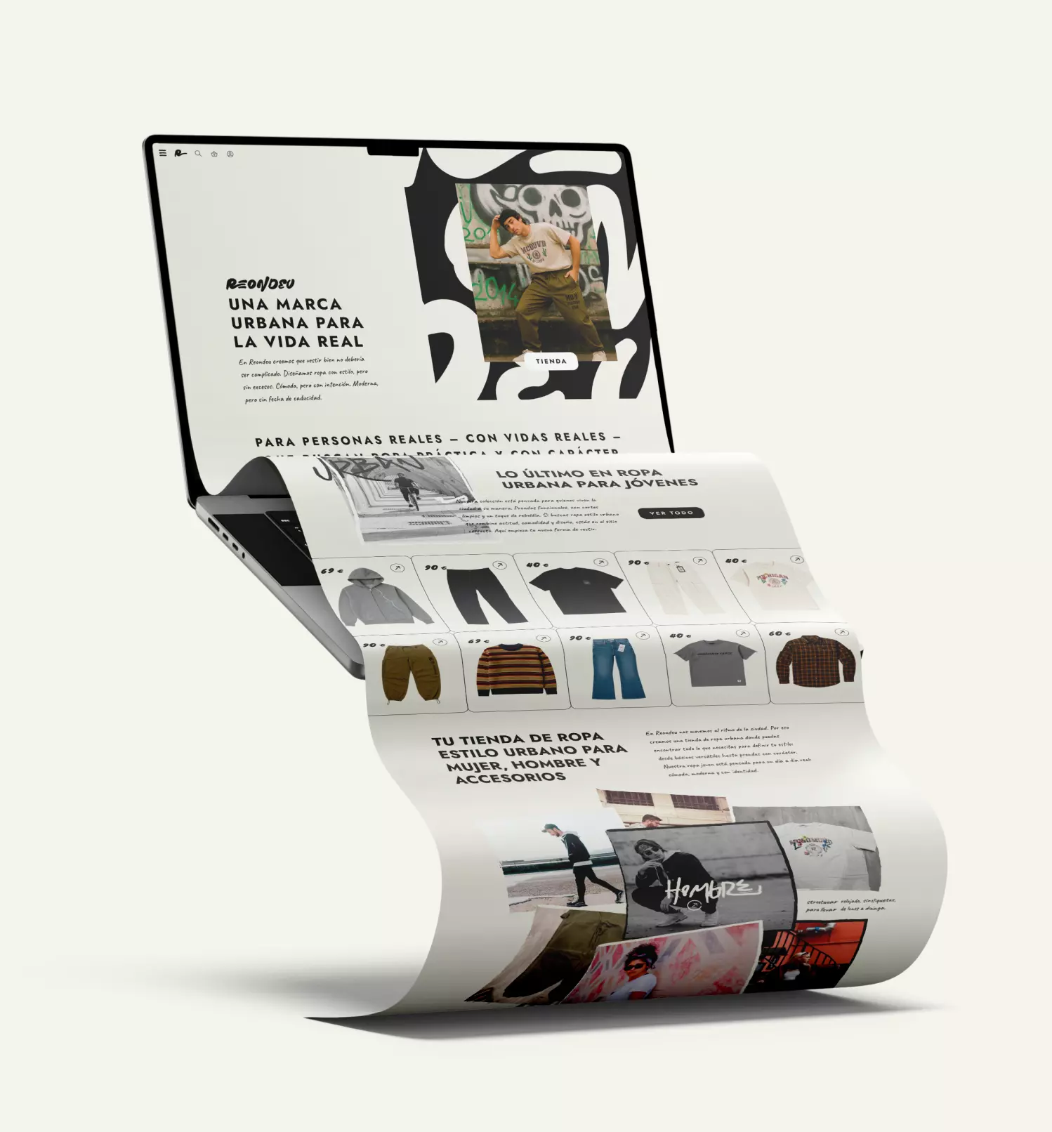 Reondeu est une marque de mode basée à Madrid, spécialisée dans les vêtements urbains et durables pour un public jeune (17–30 ans). L’objectif était de concevoir et développer une boutique en ligne sur mesure reflétant l’identité de la marque tout en optimisant les conversions, l’usage mobile et le SEO.