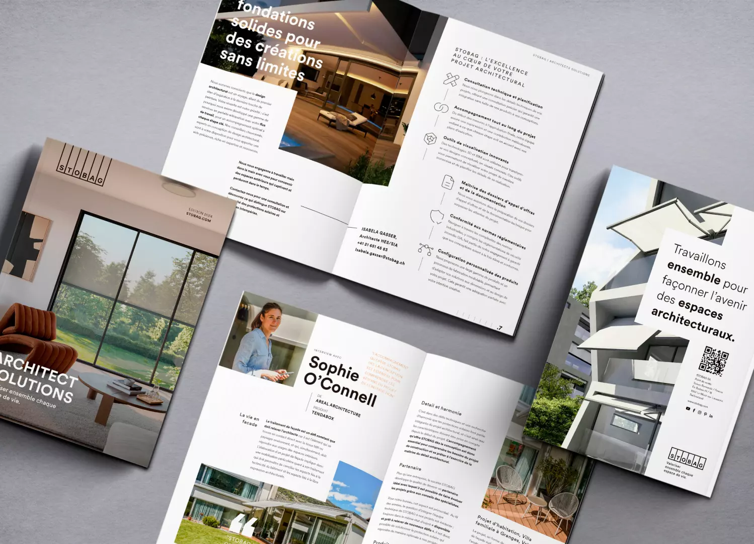 Stobag is a premium provider of shading solutions, based in Lausanne and Muri. They required a high-quality B2B brochure to target architects, showcasing their advanced products and solutions.