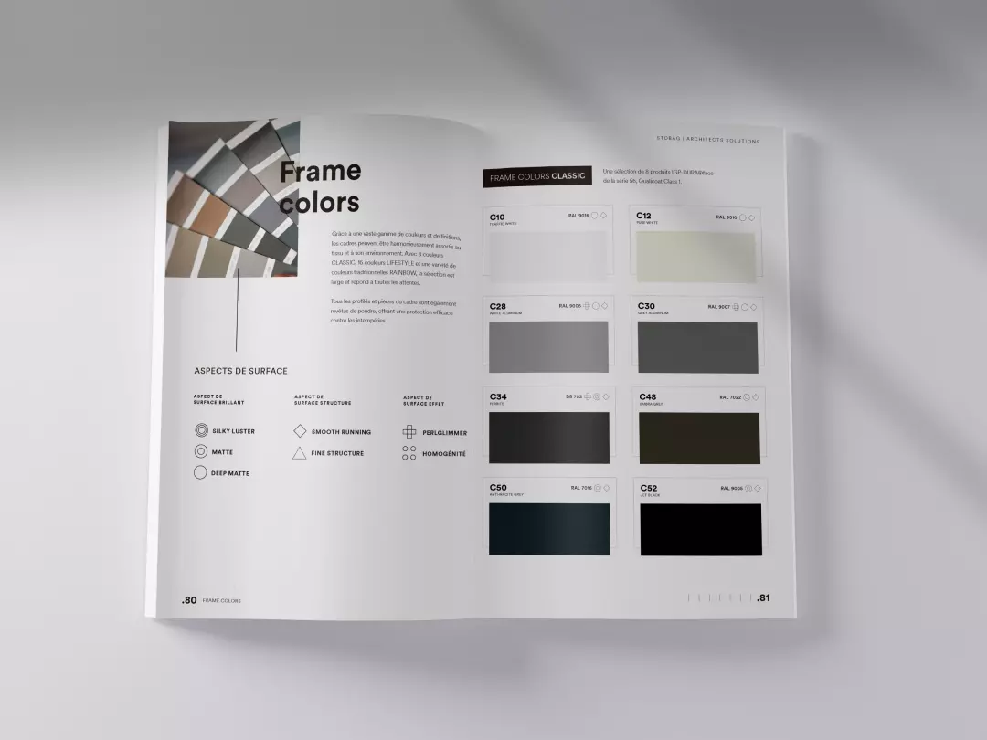 Our goal was to create a visually stunning and informative brochure specifically for architects. The challenge was to gather information and content from various parties, particularly technical details such as drawings and fabric specifications, and adapt it for the brochure.