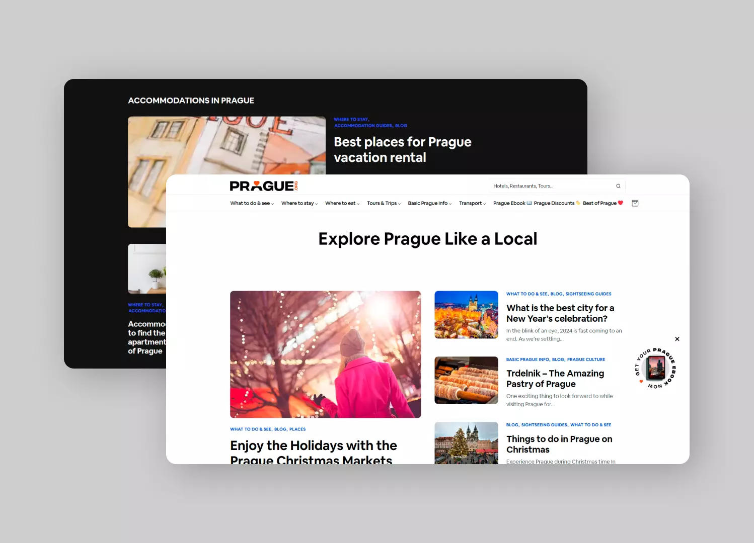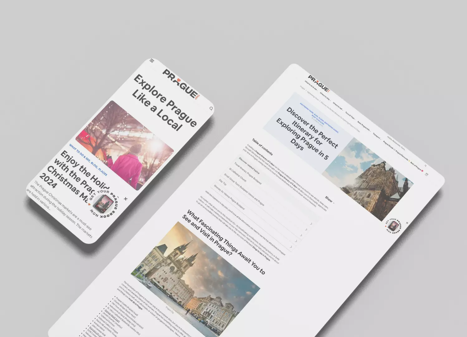 The primary challenges were to overhaul an aging design, improve user engagement, and fortify the site’s digital strategy against fierce competition. We aimed to not only attract more visitors but to become the authoritative online guide for all things related to travel in Prague.